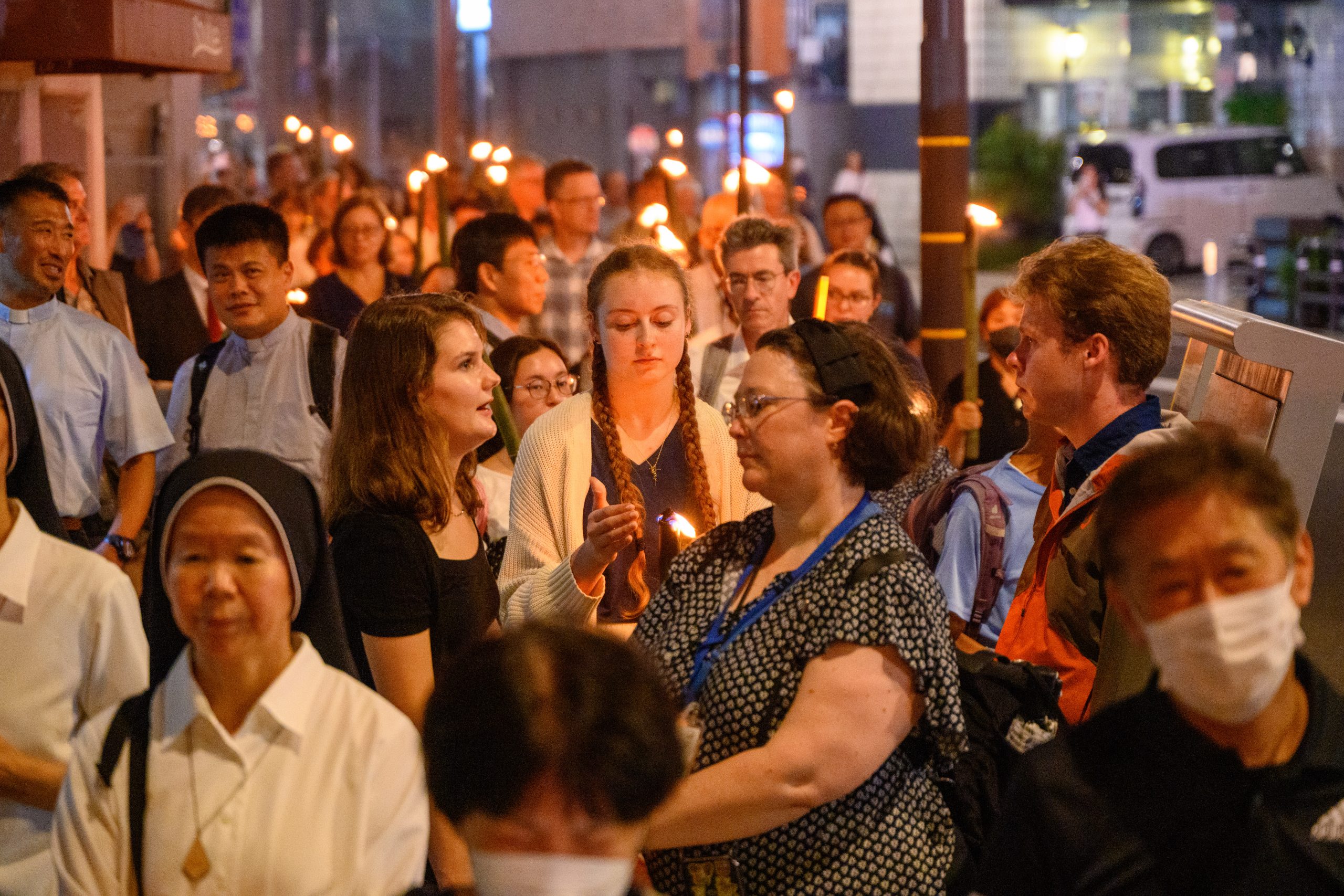 Mass was beautiful. We were invited to go to the chapel of the atomic-bombed Mary—a statue of Mary that survived the bombing but was left partially destroyed and uniquely burned, with most of her face being unmarred, except for her burned eyes, which I had been hoping to see. After the mass we held bamboo torches and walked from the church to the Hypocenter Park. We prayed in front of the statue and then took taxis back to the hotels.
